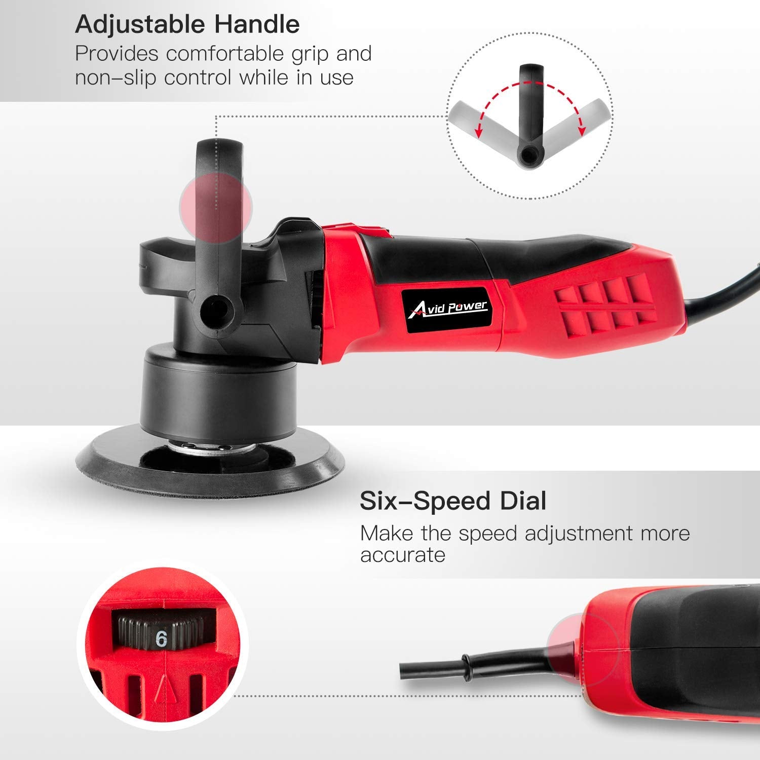 • ERGONOMIC DESIGN: The rubberized body and adjustable handle provide you with comfortable grip feeling and non-slip control while in use. Never worry about your machine rolling off the table or falling off your detailing car.