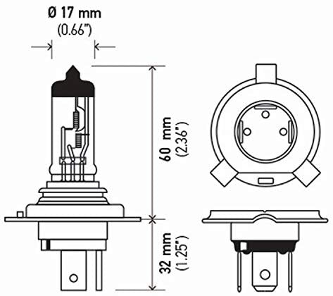 Get the best lighting performance and an increased visibility and comfort on the road compared to basic bulbs Original equipment quality bulbs you can trust from a global leader in automotive lighting technologies for more than 100 years HELLA bulbs guarantee best functionality, optimum fit and long lasting customer satisfaction HELLA recommends that you always replace in pairs to ensure symmetric light beam from both bulbs on the road as head lights will dim over time To increase a bulbs lifetime never touch the glass when installing the bulb. Either use gloves or paper towels for proper installation DOT, ECE, and INMETRO certified - Please check your local regulations 1 Bulb - Single box packaging H4 P43T-24 BULB 24V 75/70W P43t T4.625
