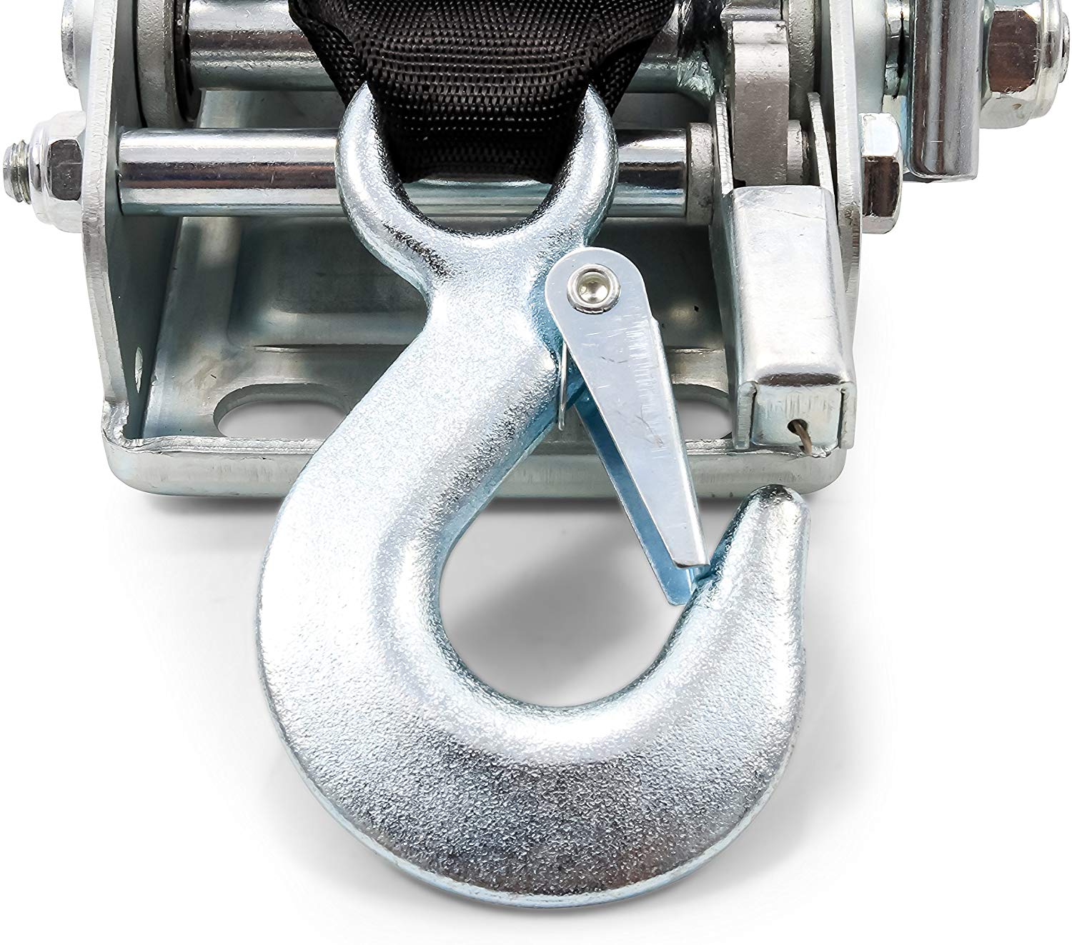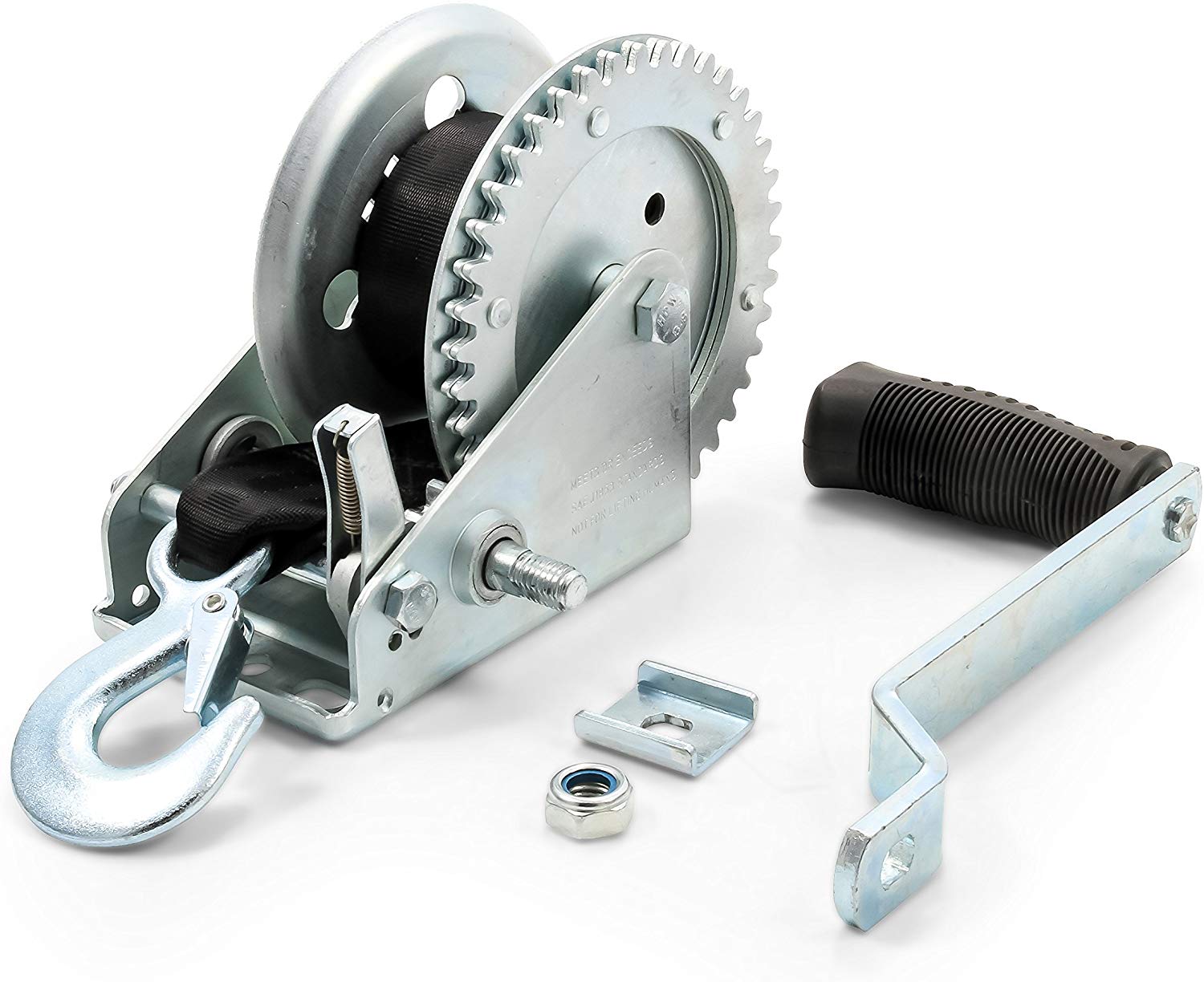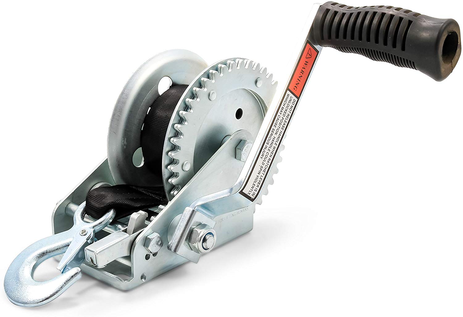 Compact yet powerful corrosion resistance winch has a heavy duty steel body, powder coating and zinc plating Provides superb lifting, loading and towing ability with its 1, 200 pound capacity Durable and resilient polyester 20 foot strap is has excellent UV resistance Comfort Grip Handle creates a secure grip for effortless cranking Heavy duty gears resist wear and help provide simpler use