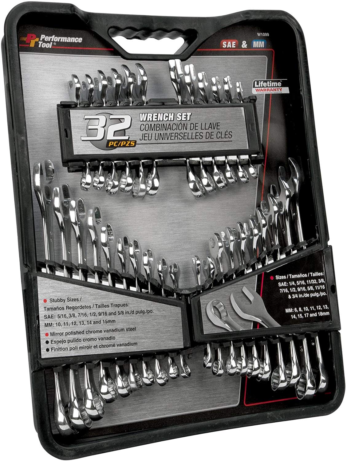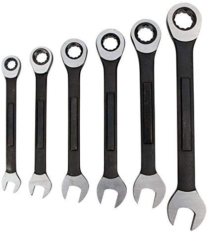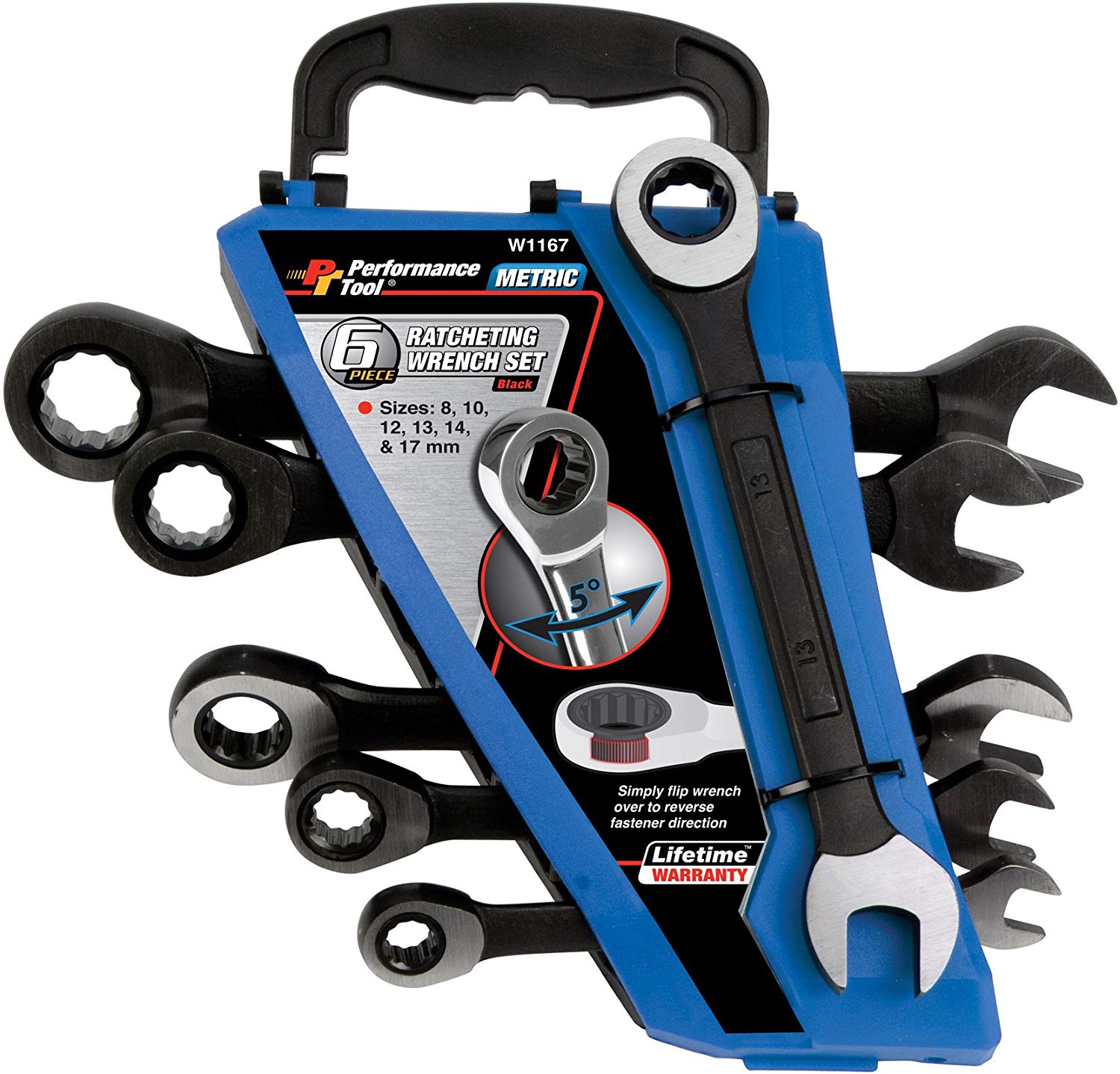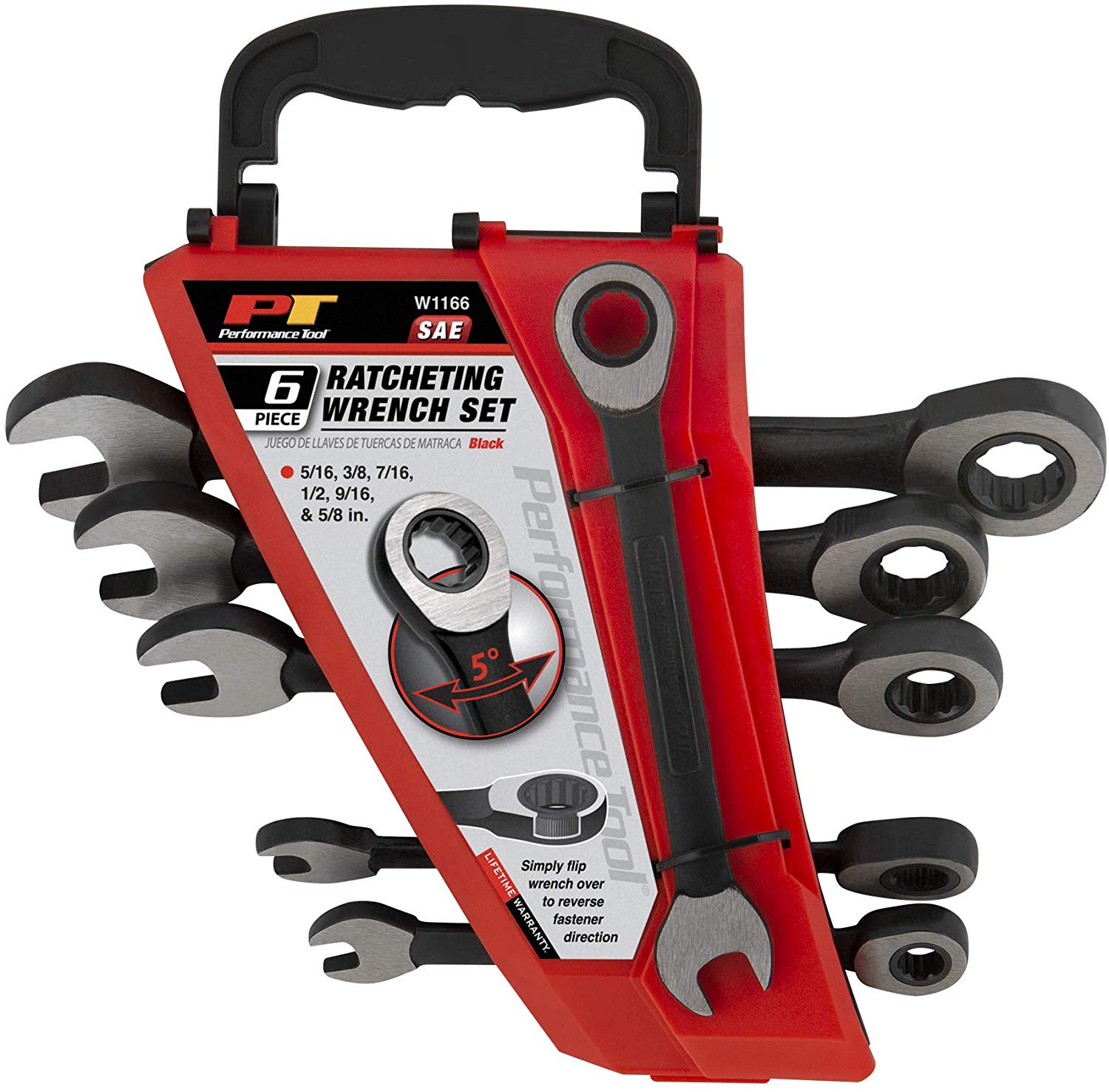 Performance Tool Black 6pc Blk W1166 6 Piece SAE Combination Ratchet Wrench Set | Premium Drop Forged Alloy Steel | Oil & Corrosion Resistant Finish | Sizes: 5/16, 3/8, 7/16, 1/2, 9/16, 5/8"